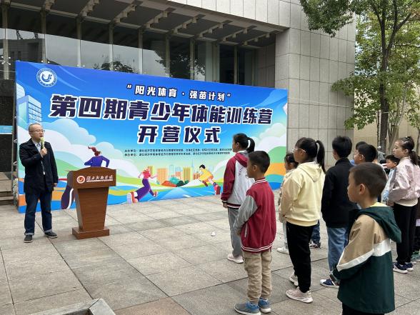 随后,由校团委副书记曹敏致辞。他首先对“阳光体育,强苗计划”特色品牌志愿服务项目活动做出了高度评价,并充分肯定了前三期体能训练营所取得的成效。他表示,未来校团委将进一步推进大学生社区实践计划“奔流行动”,深化学校与周边社区的合作共建,动员我校青年积极投身社区志愿服务,为基层治理注入青春动能,实现校地“双向奔赴”。