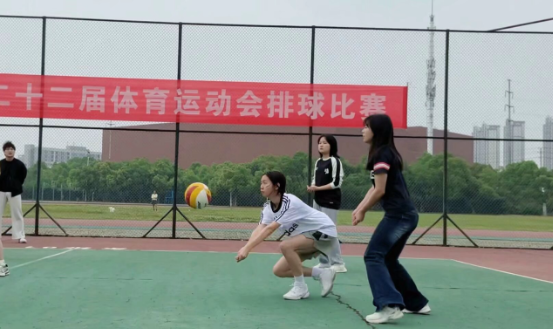 比赛期间,各学院观众聚集在赛场边翘首以盼,现场气氛热烈。运动员们在赛场上挥洒汗水、奋力拼搏,展现了许多精彩的瞬间。赛场上充满呐喊、助威、喝彩、拼搏、活力。排球不仅仅是竞技运动,更增强了队员间、院系间的友谊。